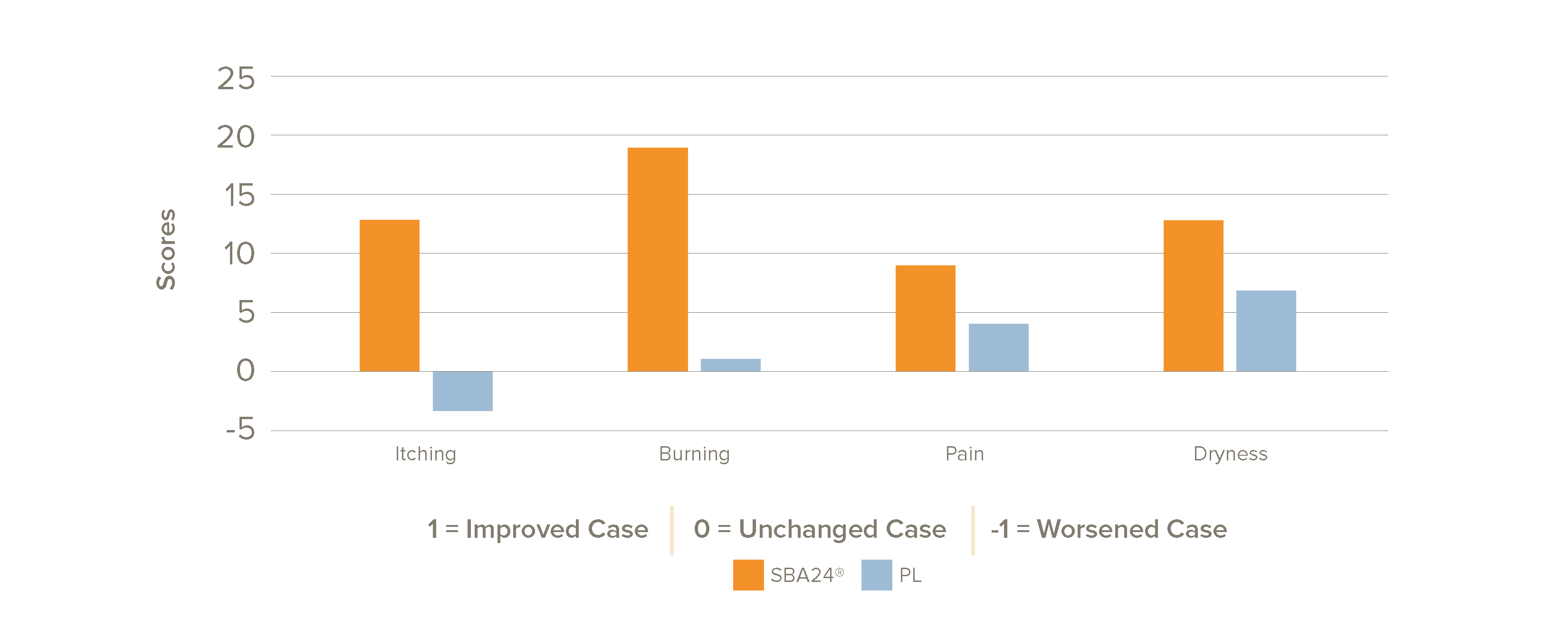 SBA24™ aids in reducing inflammation and sensitivity of the intimate skin and mucous membranes